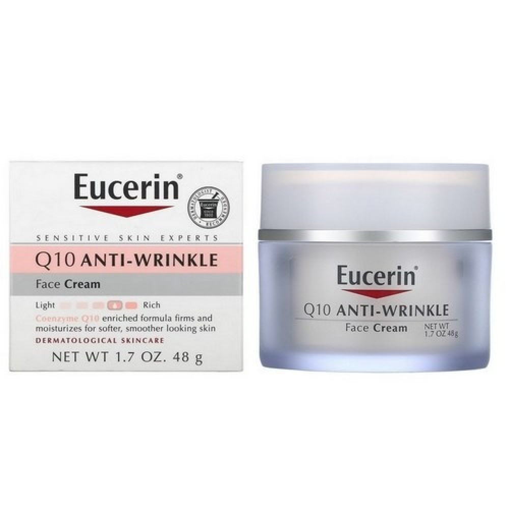 كريم الوجه النهاري المضاد للتجاعيد Eucerin Q10 هو كريم مرطب مضاد للتجاعيد مصنوع للبشرة الجافة والحساسة. تم تصميمه خصيصًا ليكون غير مهيج للبشرة ويقلل بلطف مظهر التجاعيد وعلامات الشيخوخة مخصص للأستخدام النهاري.
